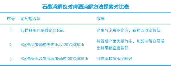 目前,國家衛(wèi)生標(biāo)準(zhǔn)規(guī)定啤酒中鉛的限量為0.5mg/L。國外對(duì)啤酒中鉛的分析報(bào)道較多,而國內(nèi)有關(guān)啤酒中鉛的測定的研究不多。下面文章中使用智能石墨消解儀對(duì)啤酒中鉛元素的分析進(jìn)行前處理消解,對(duì)啤酒的研究提供信息幫助。