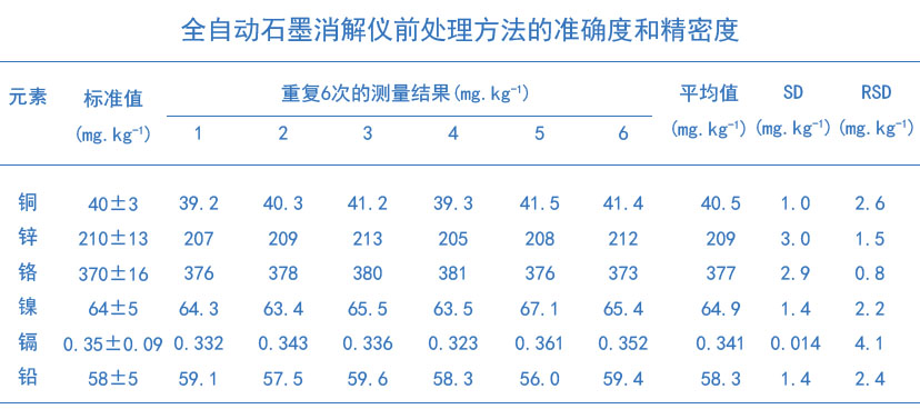 采用硝酸-氫氟酸-雙氧水體系格丹納全自動石墨消解儀同時消解土壤中銅、鋅、鉛、鎘、鉻、鎳6種元素,其消解結果完全滿足監測質控要求,而且用過氧化氫代替高氯酸的使用,目前未發現其與待測元素有特殊反應干擾測定。