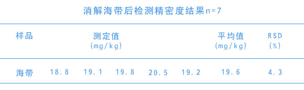 消解海帶后檢測(cè)精密度結(jié)果