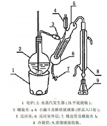 (6)實驗過程中,因蒸餾時反應室的壓力大于大氣壓力,故可將氨帶出。所以,蒸餾時,蒸氣要發生均勻,充足,蒸餾中不得停火斷氣,否則, 會發生倒吸。傳統凱氏實驗中,停止蒸餾時,由于反應室外層的壓力突然降低,可使液體倒吸入反應室外層,所以,操作時,應先將冷凝管下端提離液面并清洗管口,再蒸一分鐘后關掉熱源。蒸餾是否完全,可用精密pH試紙測冷凝管口的冷凝液來測定,中性則說明已蒸餾完全。一般情況下建議使用半微量法,因為如果蒸餾失敗的話,半微量法還可繼續蒸餾,而常量法只好全部重來,費時費力。